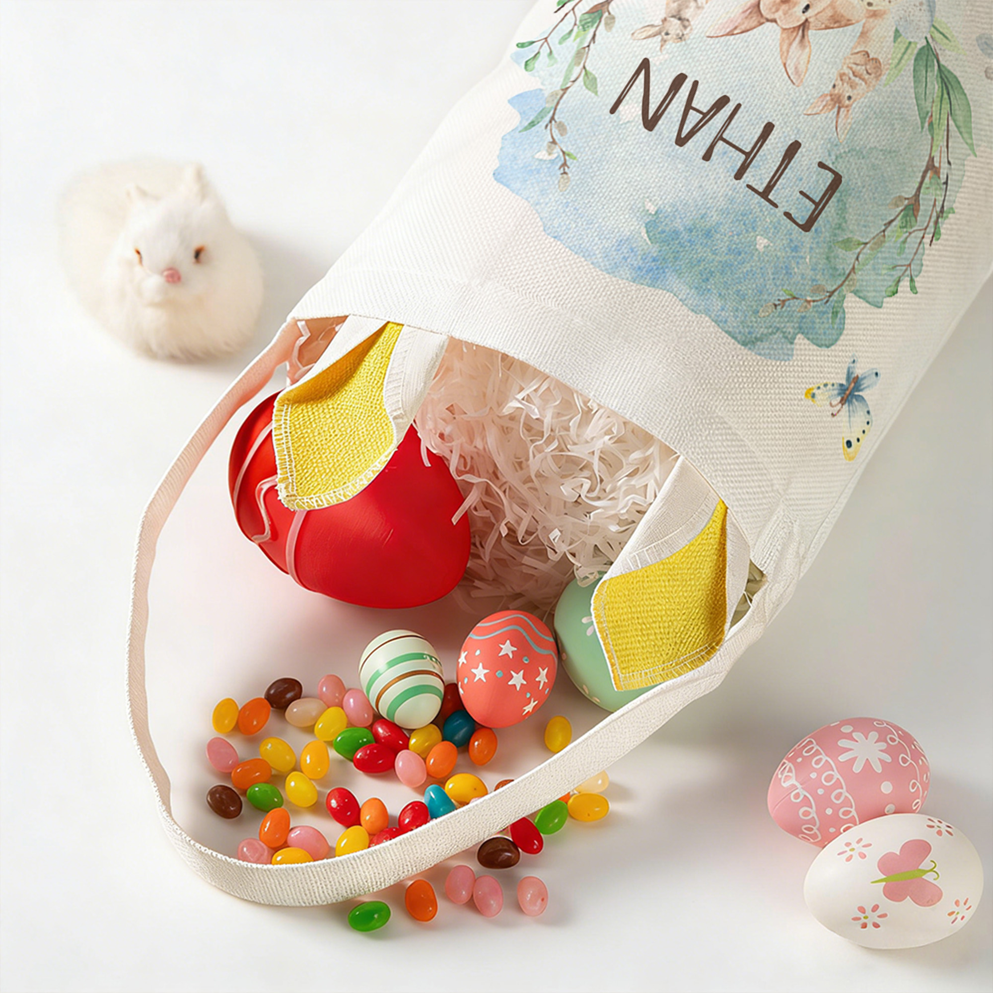 Watercolor Bunny Design - This Easter basket showcases a joyful rabbit shape with soft bunny ears and a gentle watercolor bunnies design, giving it a fun and festive style that blends naturally with Easter day traditions and Easter egg hunts.
