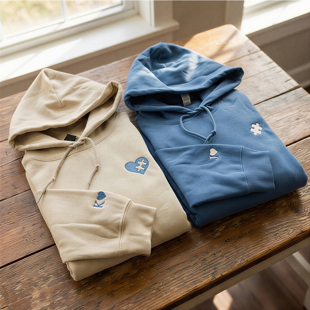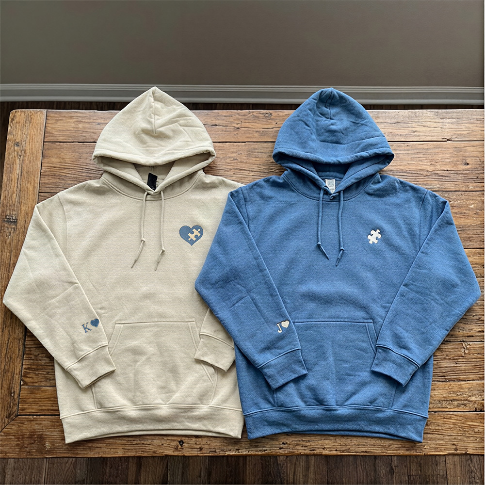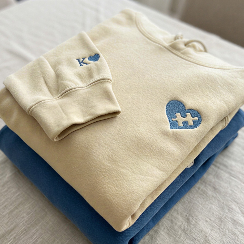 Custom Initials – Personalize each hoodie or sweatshirt with your initials, stitched in elegant thread next to a tiny heart. This subtle detail adds a deeply personal touch that makes the gift truly one-of-a-kind.