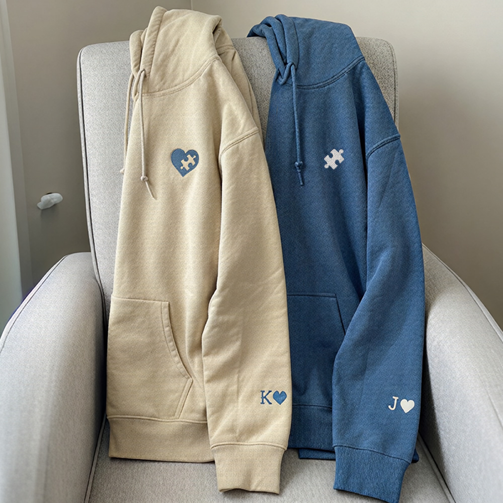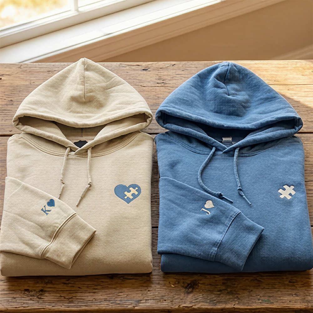 Symbolic Puzzle & Heart Design – This adorable couple set features a heart-shaped puzzle motif—when worn together, the two halves complete a full heart. Each piece is thoughtfully embroidered, creating a soft yet striking visual that celebrates your unique bond.